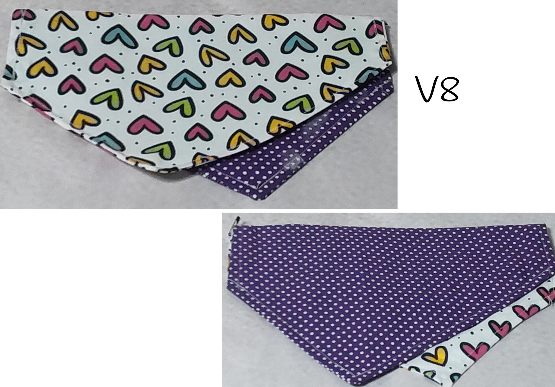 This reversible bandana attaches over the collar via Velcro so there is no need to remove the pet's collar.